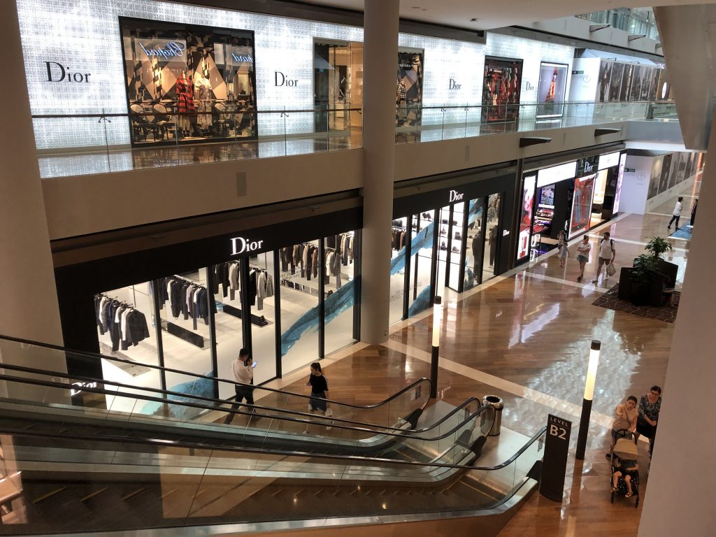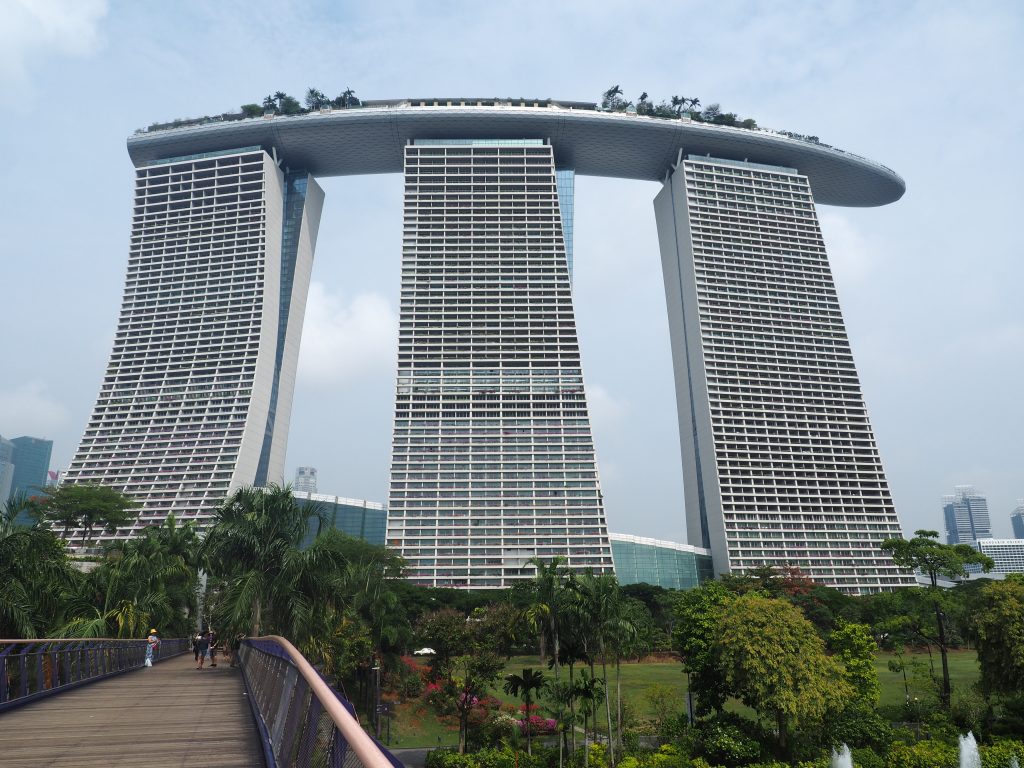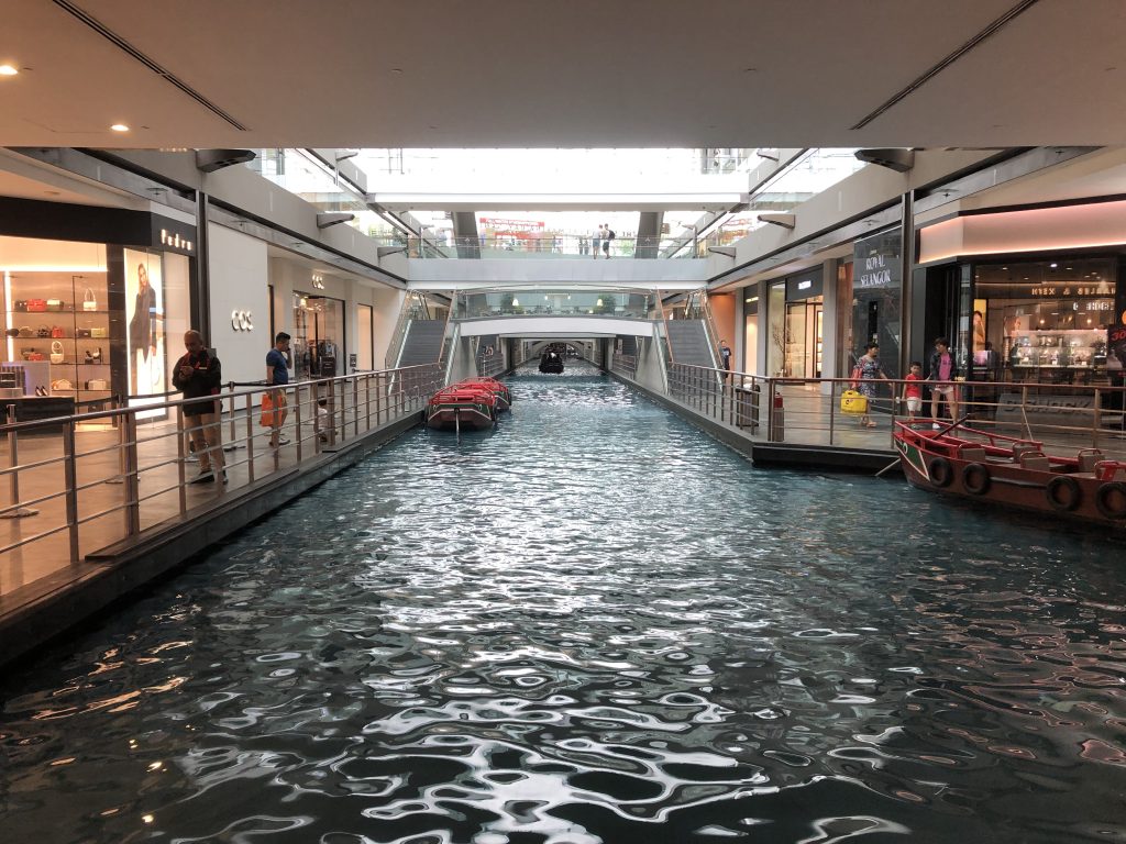 Mit dem nötigen Kleingeld in der Tasche kann man unterhalb des Luxus-Hotels Marina Bay Sands – dem neuen architektonischen Wahrzeichen der Stadt – innerhalb von ein paar Stunden locker den Gegenwert eines Einfamilienhauses „vershoppen“. In der Mall reiht sich ein Luxus-Geschäft ans nächste, in der Mitte getrennt von einem künstlichen Kanal, auf dem ernsthaft Gondeln wie in Venedig fahren. Ziemlich schräg anzusehen.