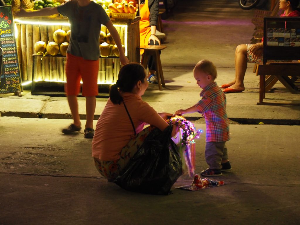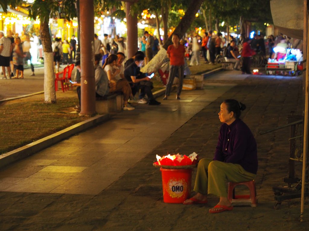 Wenn die Nudelsuppen und Baguettes in den unzähligen Hotels und Pensionen der Stadt verspeist sind, füllen sich die Gasten zusehends. Am besten lässt man sich dann einfach treiben, schaut sich in den vielen Schneiderläden um, in denen Anzüge und Abendkleider innerhalb eines Tages angefertigt werden, und in den vielen Lederwaren-Geschäften, ein weiteres Handwerk, für das Hoi An bekannt ist. Wer Lust hat zu shoppen, der wird hier auch fündig, denn die Auswahl und damit die Konkurrenz unter den Geschäften ist groß. Ergänzt wird das durch ein Heer von Straßenhändlern, die Glücksbringer, Spielzeug, Knabbereien, Obst und Postkarten verkaufen. So sind auf und neben den Straßen Tausende Jobs für die Menschen hier entstanden, von denen der eine besser, die andere schlechter leben kann.