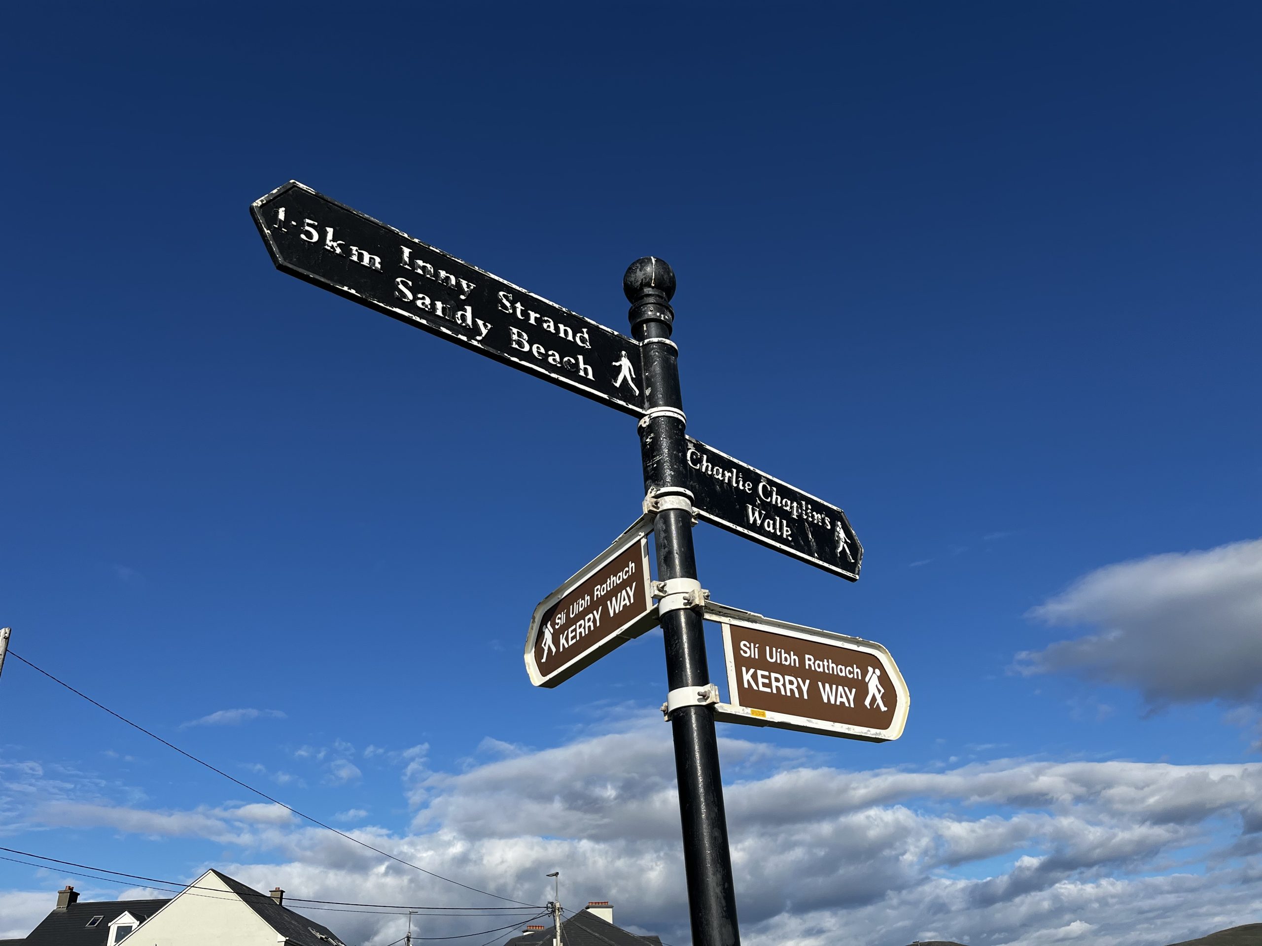 Der zweite Tag ist auch deshalb etwas fies, weil zehn Kilometer vor dem Ziel noch ein weiterer, deutlich steilerer Anstieg wartet. Aber auch hier entschädigt das Panorama für jeden mühevollen Schritt. Auf dem Höhenzug oberhalb von Waterville bekommt man die ganze Pracht dieser Landschaft in konzentrierter Form. Geht der Blick zurück, sieht man bis zum Horizont grüne Hügel. Blickt man nach vorn, sieht am über die zerklüftete Küste auf den Atlantik. Wirklich spektakulär. Und auch das Örtchen Waterville am Ziel der Etappe hat einiges zu bieten. Hier hat nicht umsonst Charly Chaplin schon gerne seinen Urlaub verbracht.