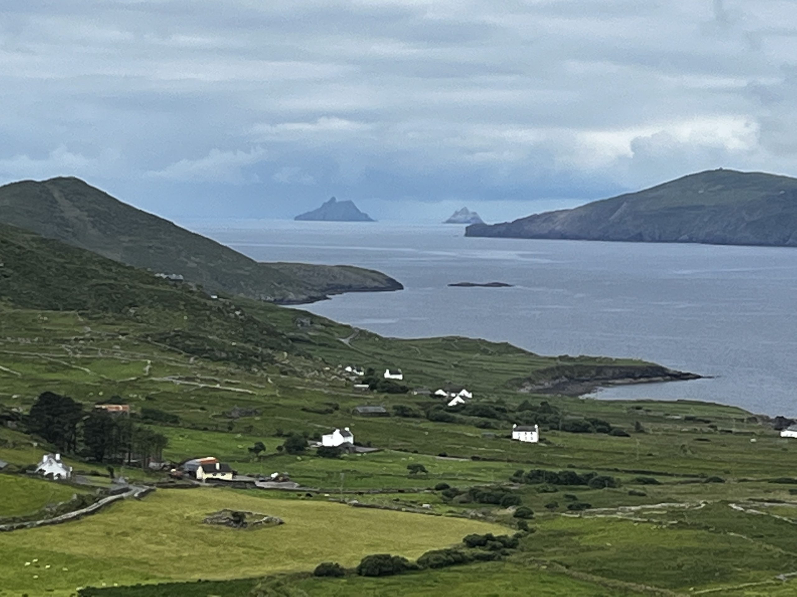 Die kürzeste gilt als eine der schönsten Etappen des Kerry Way. Vielleicht weil man hier an mehreren Stellen tolle Ausblicke aufs Wasser hat. Das fängt gleich hinter Waterville an, wo der Weg an einer Steilküste entlangführt. Danach steigt er über mehrere Kilometer sanft an und zur Rechten hat man immer den Blick auf den Atlantik. Kurz bevor der Weg über einen Kamm in die nächste Bucht führt, hat man den besten Blick auf Skellig Michael. Die schroffe Felseninsel ist Star-Wars-Fans als Skywalker Island bekannt: Die Insel diente als Kulisse für den Zufluchtsort von Luke Skywalker in Episode VII. Ihr historische Bedeutung ist aber weit beeindruckender: Wahrscheinlich schon im 7. Jahrhundert wurde hier ein Kloster errichtet, in dem Mönche lebten. Die Lebensumstände auf einer Insel, auf der nichts wächst und die gut 10 Kilometer vor der Küste liegt, mag man sich heute nicht mehr vorstellen. Auf die Insel kann man natürlich Touren buchen. Die tägliche Gästezahl ist wegen der hohen Nachfrage – die traurigerweise eher an Star Wars als an ihrer Geschichte licht – limitiert.