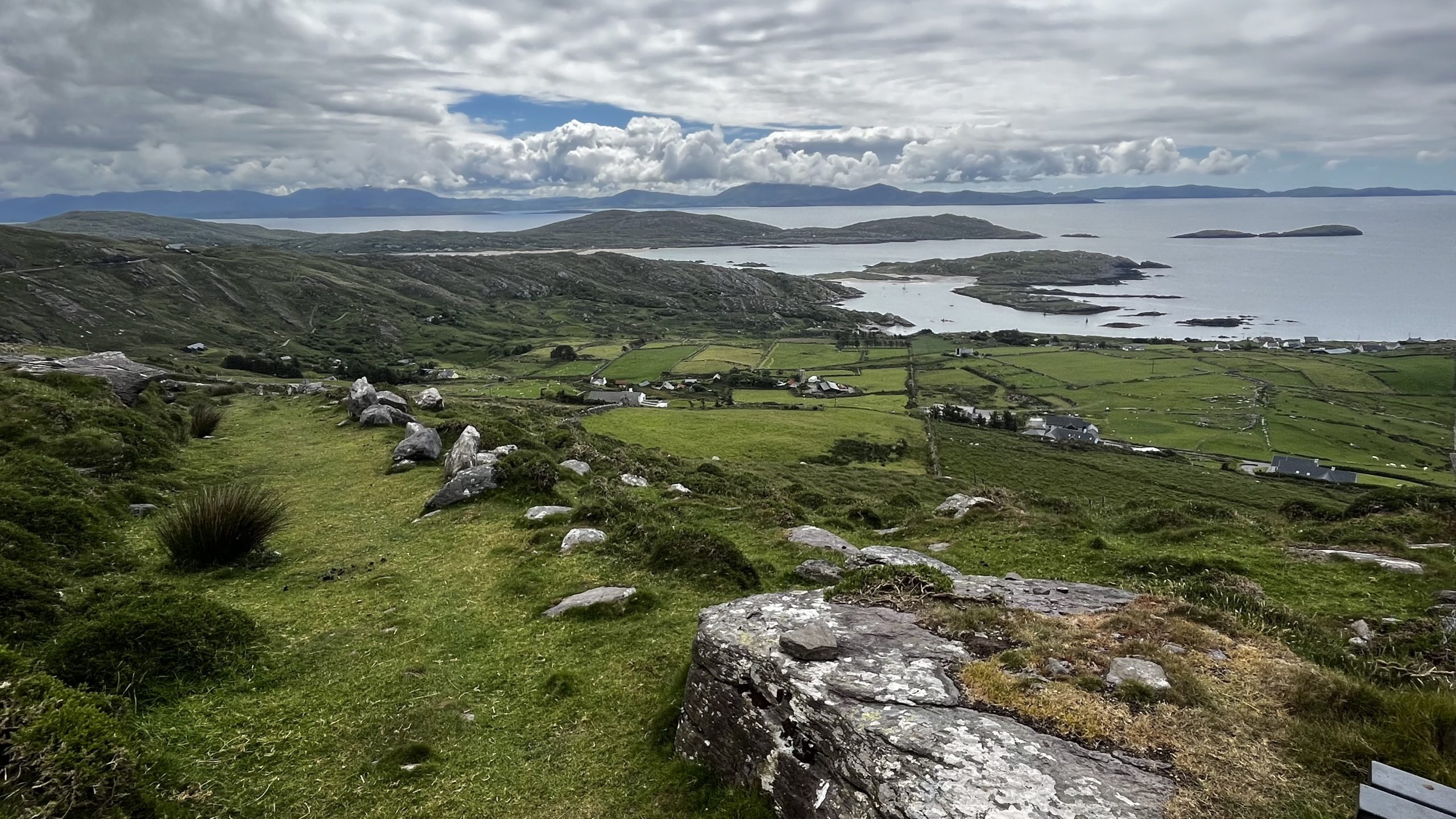 Weiter geht’s danach wieder in Richtung Landesinnere und über ein raues Hochplateau, bevor der etwa zehn Kilometer lange, sanfte Abstieg in Richung Caherciveen beginnt. Hier lohnt es sich, an verschiedenen Stellen mal innezuhalten und sich genauer umzusehen. Spannend sind zum Beispiel die Ruinen alter Cottages, die vor langer Zeit aufgegeben wurden, weil die Bewohner ein besseren Leben in Nordamerika oder anderen Teilen der Welt gesucht haben. Man kann sich gut vorstellen, dass dieses grüne, aber eben doch schroffe Land ein entbehrungsreiches Leben beschert hat. Das ländliche Irland war, bei all seiner Schönheit, einst eins der Armenhäuser Europas.