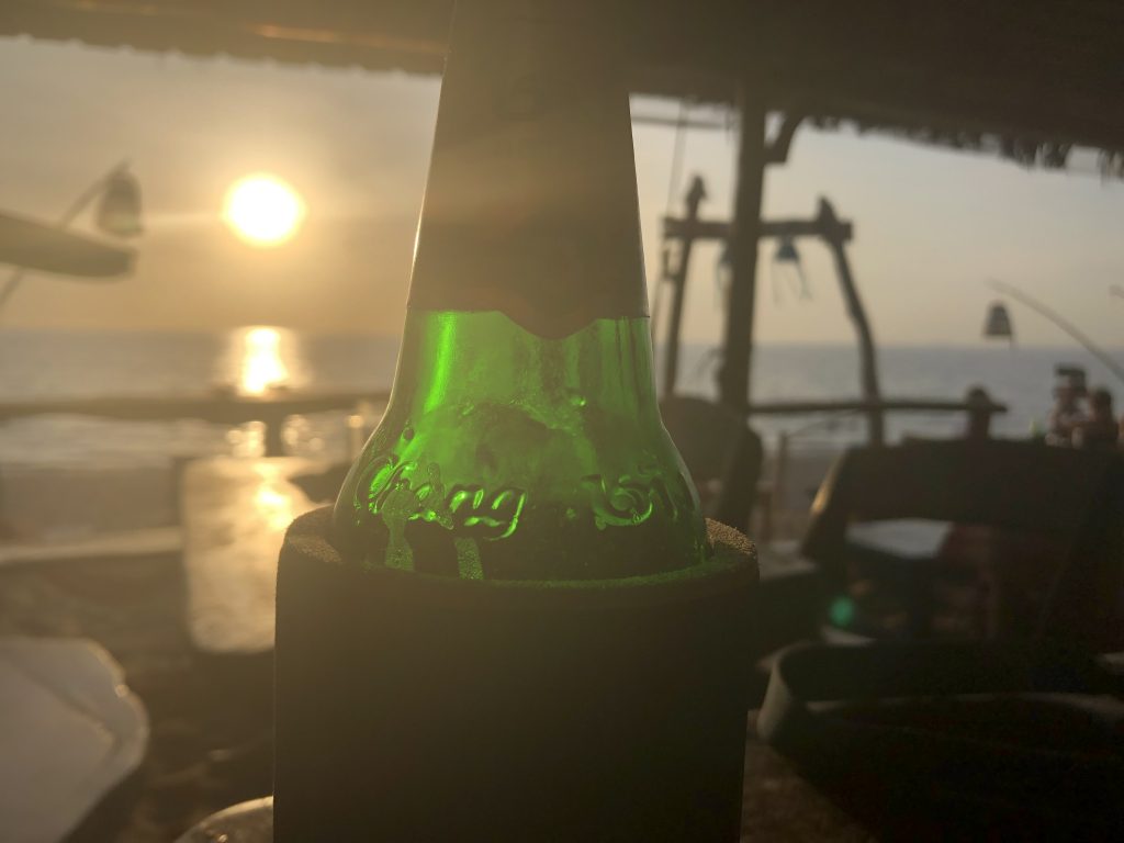 Abends, wenn die Sonne dem Meer entgegensinkt und die Bar des Roundhouse in goldenes Licht taucht, wird es etwas voller im Wohnzimmer. Paul, der hier sein Leben mit freiem Oberkörper lebt, trinkt mit ein paar Stammgästen ohne Hast ein Bier nach dem anderen. Es ist Happy Hour, da kostet der halbe Liter Chang nur 80 Baht, knapp 2,50 Euro. Vicky spricht mit einem dicken Australier und einem kleinen Amerikaner, die offenbar so lustig sind, dass die Engländerin mit ihrer schallenden Lache den halben Strand an ihrer Verzückung teilhaben lässt. Selbst Charlie und Sly sind jetzt wach, die beiden Hunde, die zur Familie gehören und in der Regel den ganzen Tag verschlafen. Wenn die Sonne den Horizont berührt, wird es fast ehrfürchtig still. Dann schauen alle in die Ferne, hängen ihren Gedanken nach. Es ist nicht zuletzt dieser Moment, wegen dem einige hier geblieben sind. Zum Sonnenuntergang entfaltet der Klong Nin Beach seine ganze Magie.