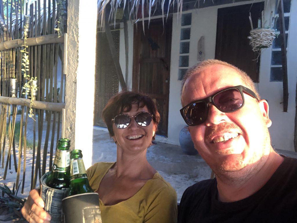 Das Leben hier dreht sich vor allem um Paul und Nadia. Das Roundhouse ist ihr Zuhause, seit sie es vor sieben Jahren übernommen haben. Vier, fünf Bungalows, dazu ein paar Zimmer im vorderen Gebäude, das teuerste mit der Balkontür direkt zum Strand. Und mittendrin die Bar. Sie ist Wohnzimmer, Bühne, für manche auch Büro und vor allem das Reich von Paul, der jeden Tag selbst hinter der Theke steht. Paul mag Bier. Er ist schließlich Engländer. Und um ihn herum geht das Leben seinen speziellen, meist langsamen Gang.