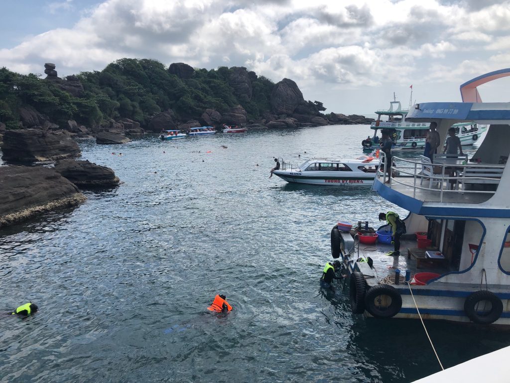 Vom schmalen Strand, der durch eine gepflegte Wiese verbreitert wird, geht es mit dem Boot zum Schnorcheln und auf eine weitere Insel. Die kleinen Eilande sind malerisch, haben hübsche kleine Strände, das Wasser ist einigermaßen klar. Aber schon jetzt ist es voll hier, hält ein Tourenboot neben dem anderen, löst eine Touristengruppe die andere beim Schnorcheln und beim Kokosnuss-Schlürfen am Strand ab. Und wachsen werden die kleinen Inseln hier von Natur aus nicht, bis die riesigen Ressorts fertig sind und der bereits ausgebaute Flughafen per Direktflug aus Moskau, Peking und Seoul angeflogen werden kann. Das dürfte eng werden. Auf den Inselchen wird allerdings auch an vielen Stellen gebaut, um so viele Touristen wie möglich aufnehmen zu können.