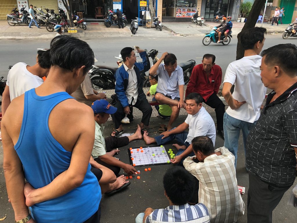 Hat man sich einmal dran gewöhnt, gibt es in der Stadt unheimlich viel zu entdecken. Egal ob im District 1, wo es alles zwischen Straßenküchen und Fünf-Sterne-Hotel aus der Kolonialzeit gibt, oder in einem der Randbezirke der Innenstadt. Wie überall während meiner Reise, habe ich auch Saigon zu Fuß erkundet. In der Innenstadt, wo ich in einem tollen Hostel untergekommen bin, wechseln sich Garküchen, Coffeeshops und Unterkünfte jeder Art ab. Dazwischen sitzen Knäuel von Männern, die einer Partie Brettspiel zwischen zwei Kontrahenten beiwohnen. In der Freifläche an der alten Flaniermeile Le Loi treffen sich Englischklassen, um gemeinsam zu lernen, und suchen dazu auch das Gespräch mit Touristen. In der „Walking Street“ reihen sich Kneipen und Restaurants aneinander, vor denen man tagsüber echte und abends vermeintliche Massagen angeboten bekommt. Immer gilt hier: Das Leben findet draußen statt.