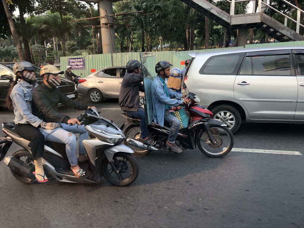 Motorräder und Roller bestimmen das Stadtbild. Auf ihnen wird alles transportiert: Menschen, Waren, nicht selten alles gleichzeitig. Die Höchstzahl an Personen, die ich auf einem Motorrad gesehen habe, waren fünf Erwachsene.